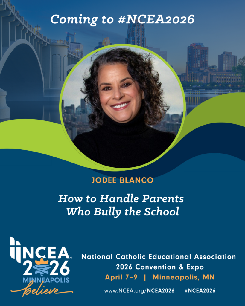 If you’d like more strategies and techniques, I hope you’ll join me in Minneapolis for NCEA 2026 Convention & Expo, where I’ll be giving a session on How to Handle Parents Who Bully the School. Please join me during Professional Learning Session 3 on Wednesday, April 8, at 10:30 AM in Room 200 CDE.